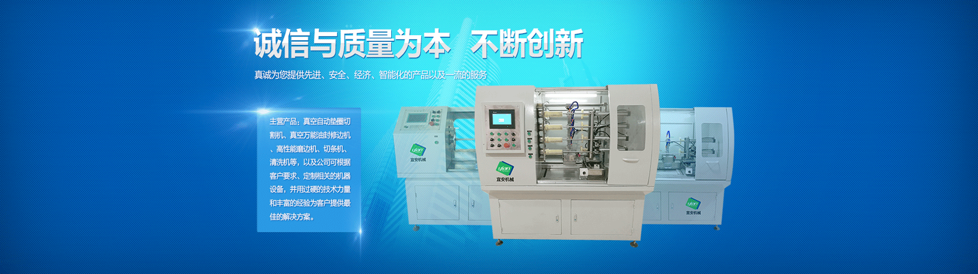 主要產品有多軸真空式墊片切割機、真空式萬能密封件修邊機、橡膠磨邊機等專用設備